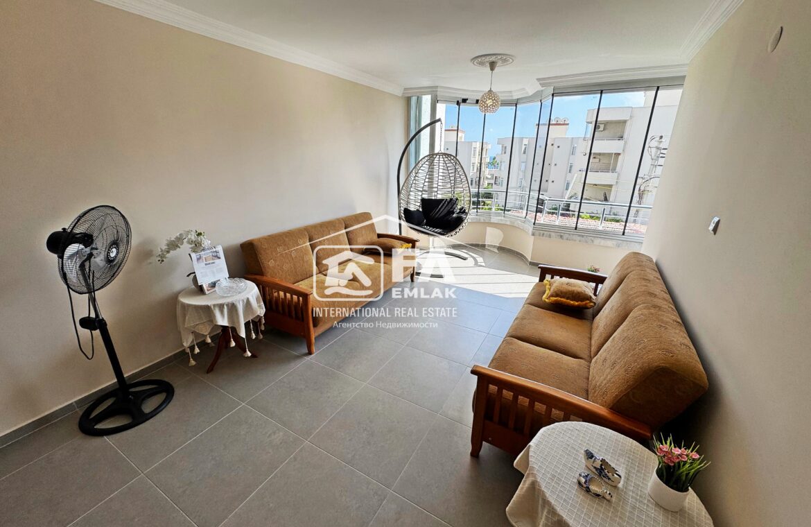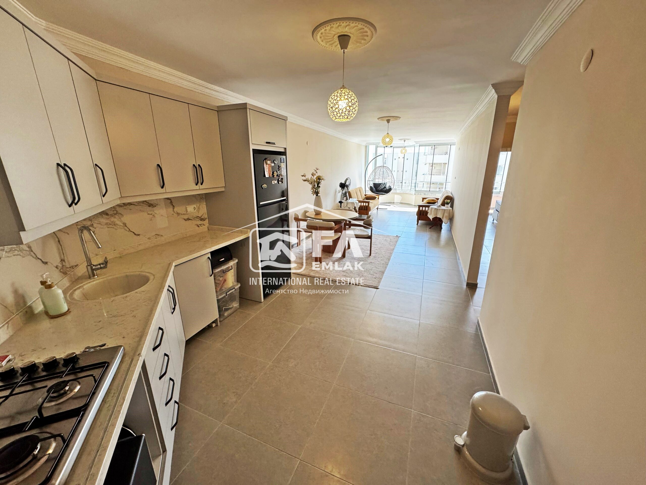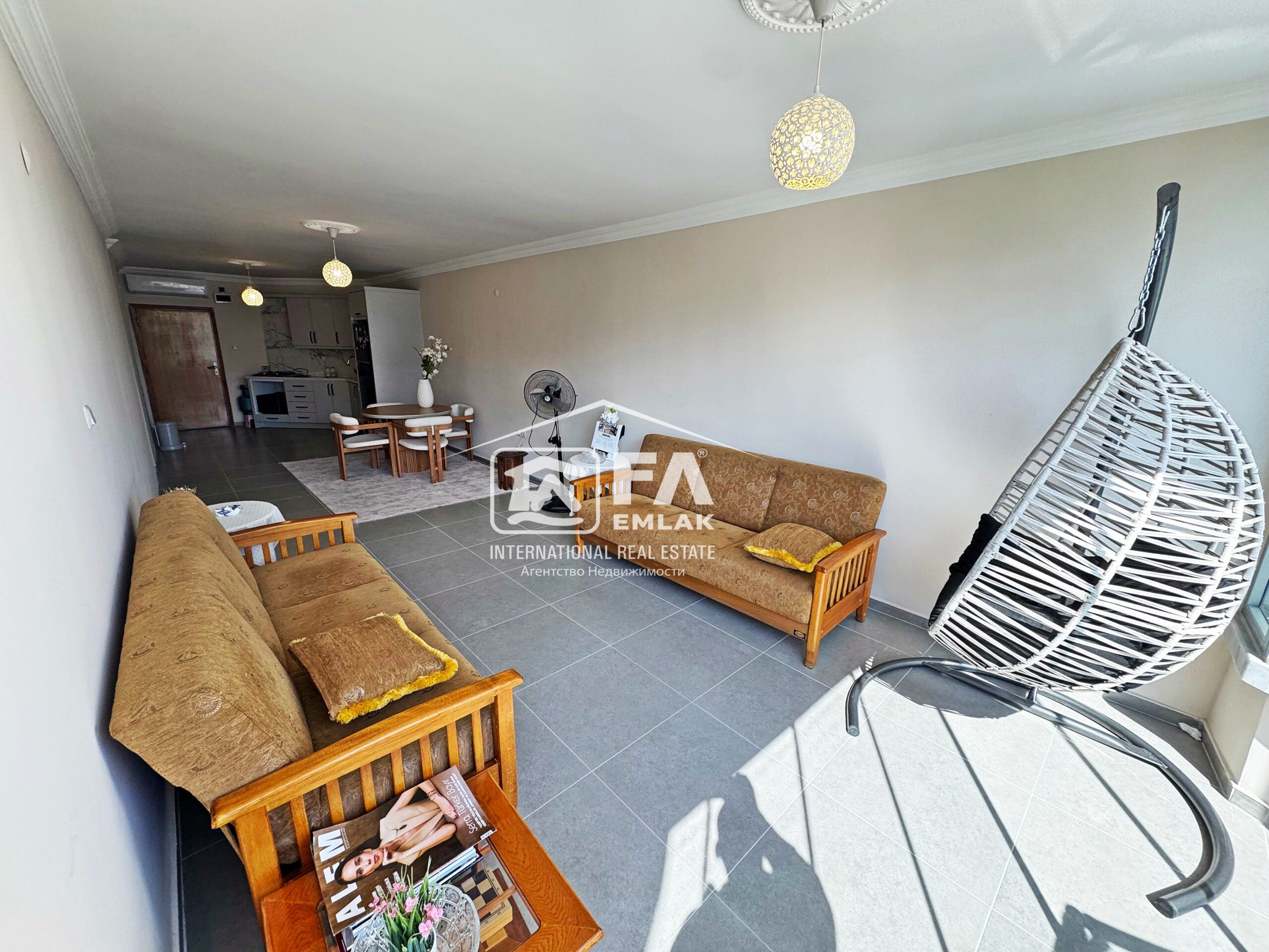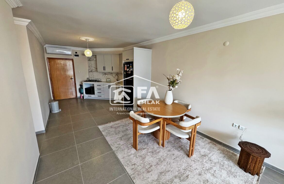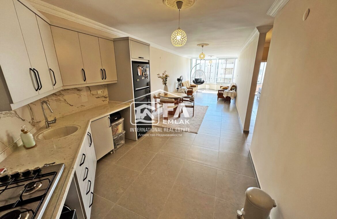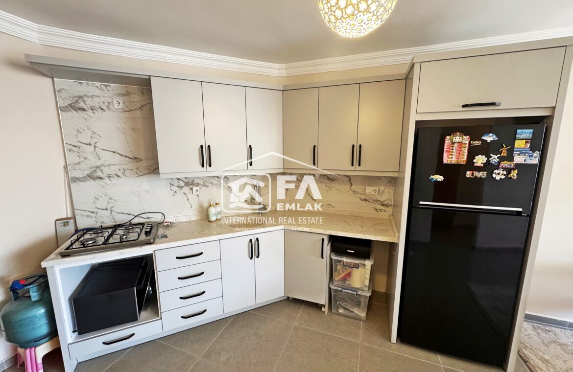 100 m² Brüt , 90m² Net kullanım alana sahip Amerikan mutfak olup kısmi eşyalı